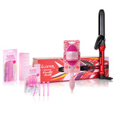 This 8-piece set includes the Paradise 32mm Max Volume Clip Curling Wand, an eco-friendly detangling brush, a glitter-infused comb, and a set of 4 vibrant styling & sectioning pro hair clips.